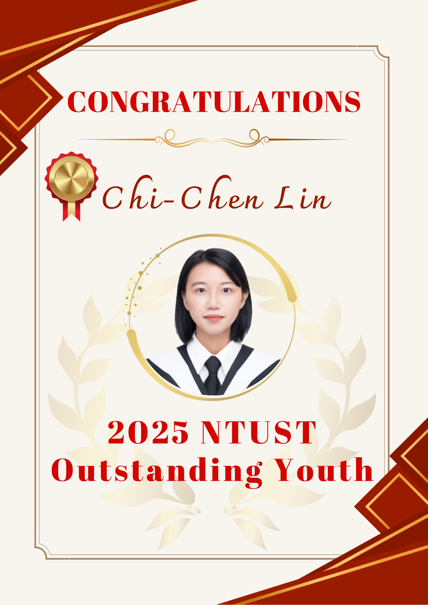 Congratulations to Chi-Chen Lin on being selected as the 2025 NTUST Outstanding Youth!